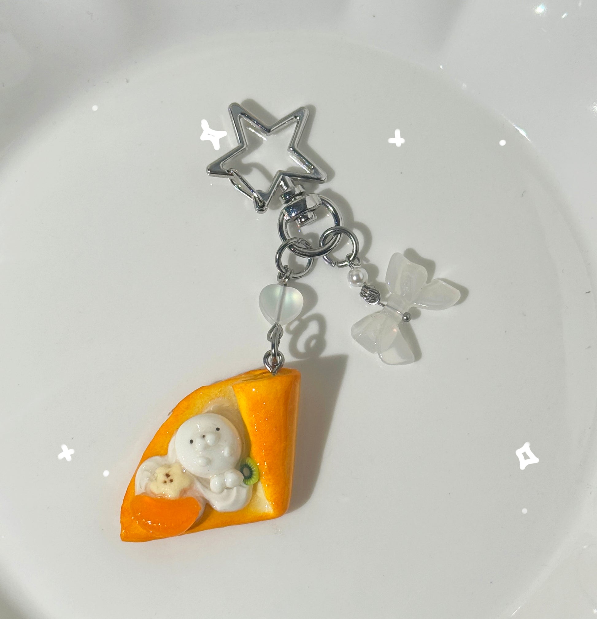 Sweet lookin' crepe keychains with characters in it, making you hungry for crepes everytime you see it.
