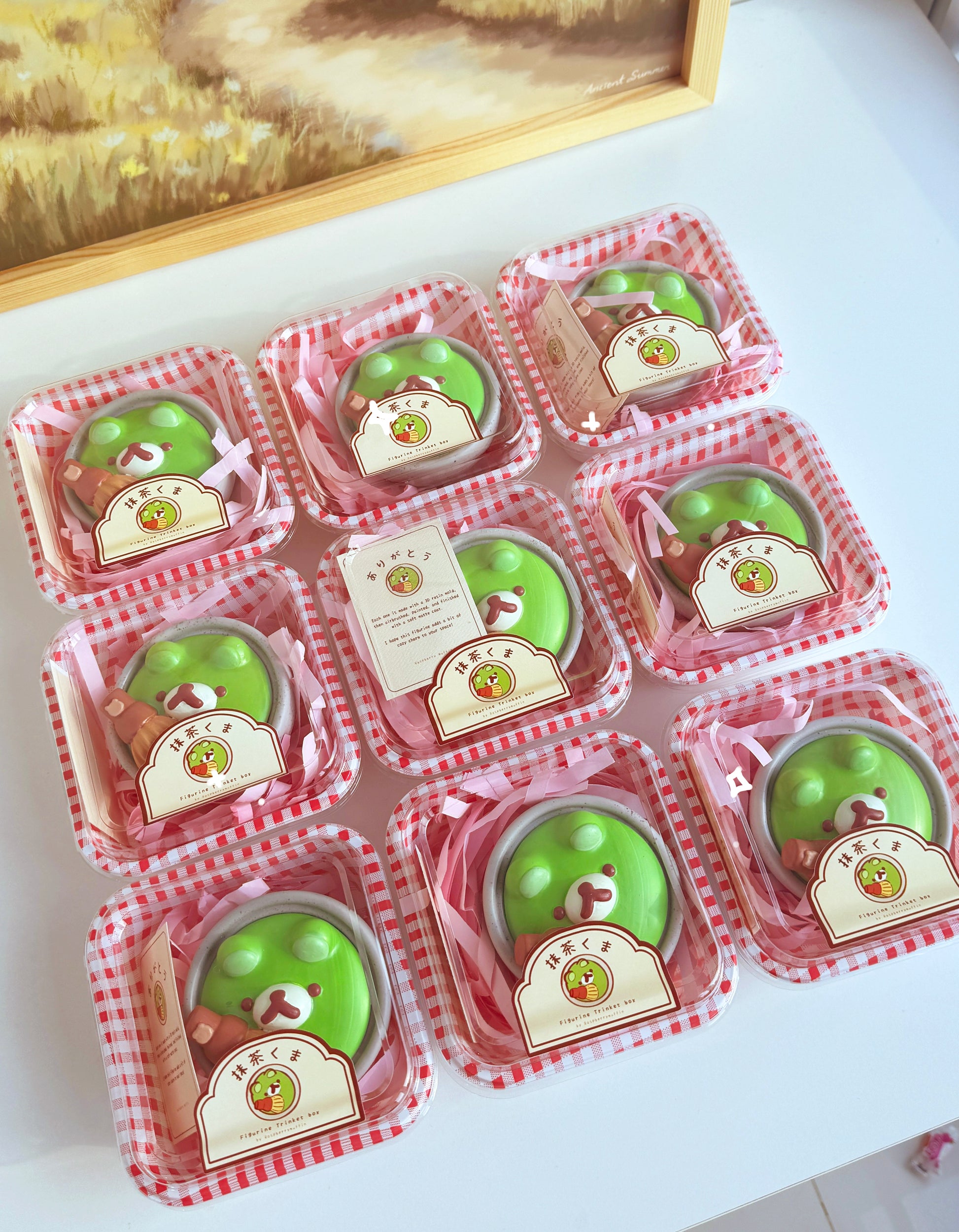 A whisked foamy matcha bowl that looks like a bear! Each figure uses a custom made resin mold and hand painted one by one. Its a small yet stylish trinket bowl for all the matcha girlies and perfomative males out there!