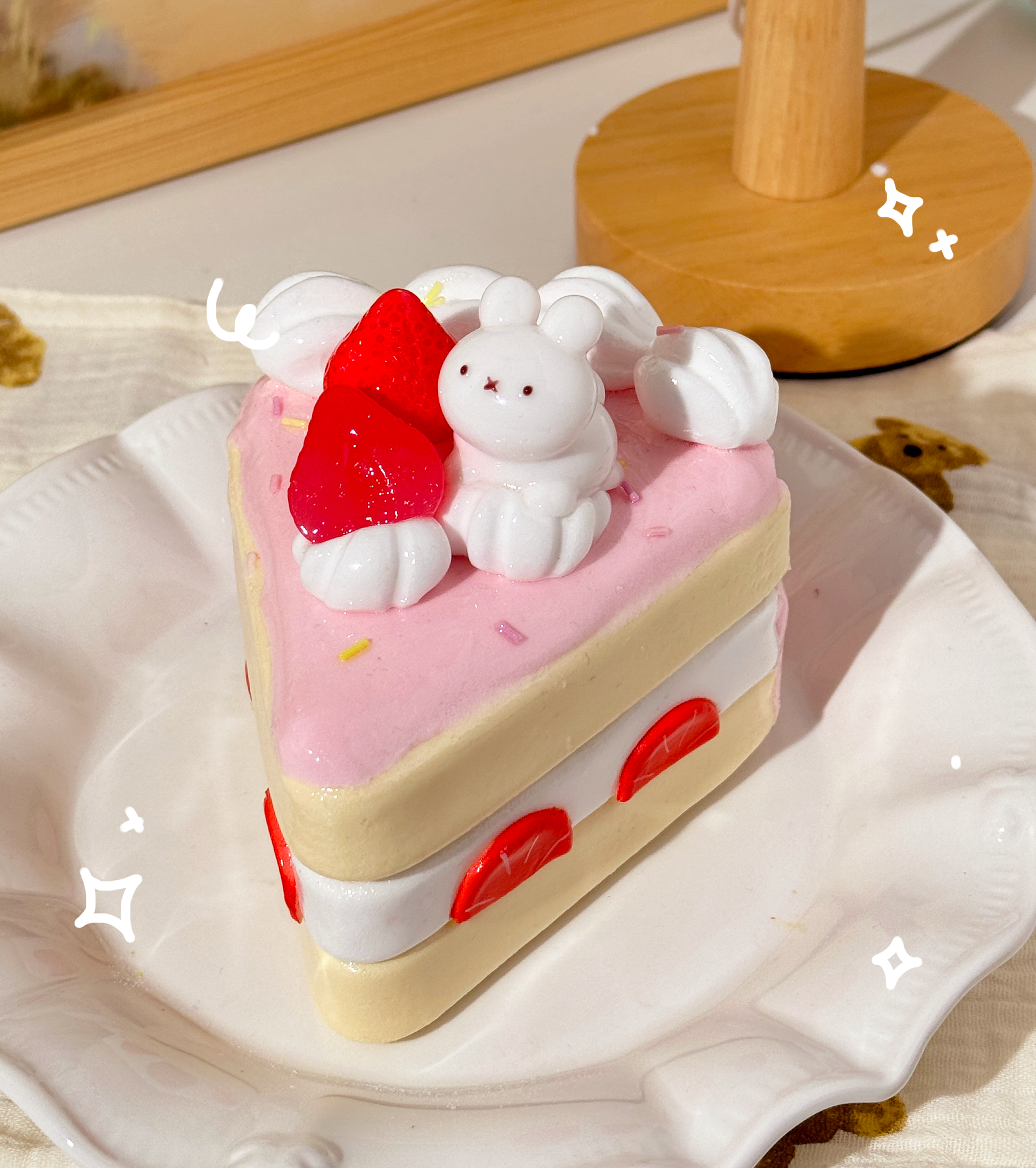 A delightful paper clay creation resembling a slice of cake, coated with a glossy UV resin finish. Ideal for keeping tiny accessories and trinkets organized. Comes with ringpuffs and a lid pocket for smaller items.